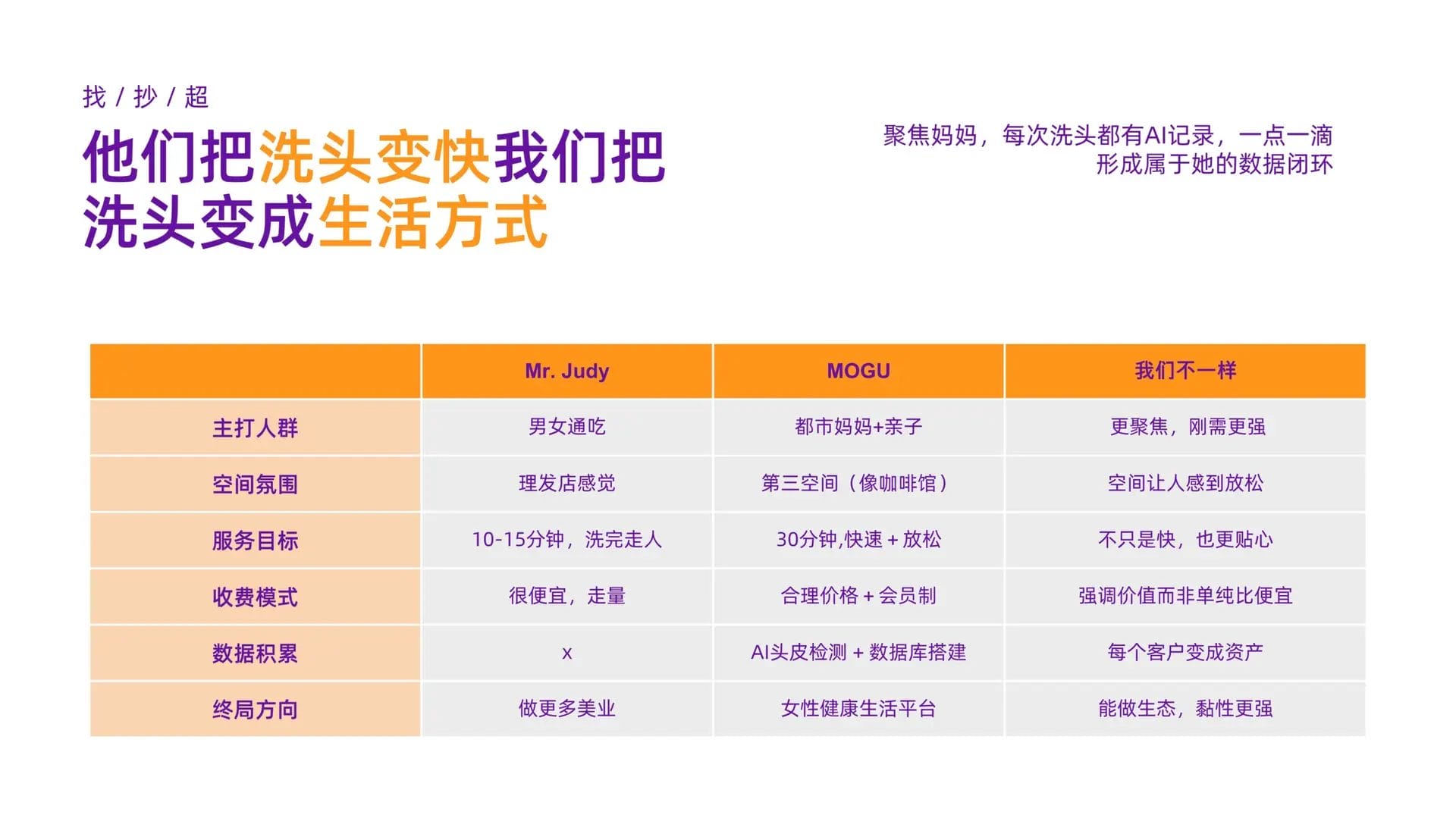 MOGU为讲究效率、追求质感的都市人而生,摒弃复杂头疗流程,专注“洗头”这件简单但高频的事。坚持“标准、便利、可复制”的理念,打造高复购、高颜值的全新洗护体验。Luban协助客户理清战略方向,重构商业模型,迈出打造连锁体系的关键一步。